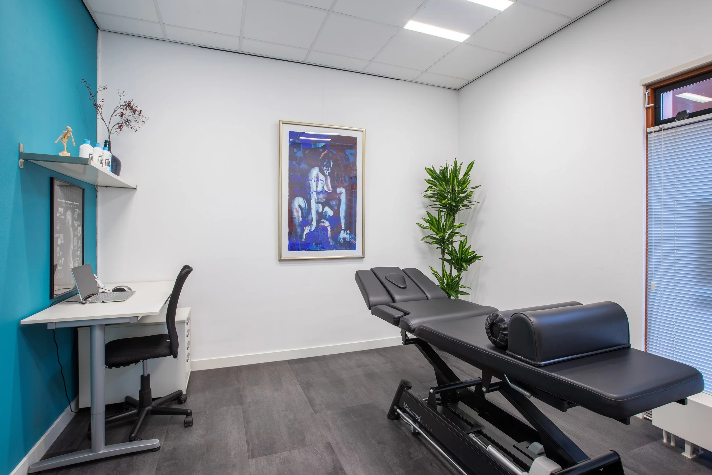 Onze praktijk beschikt over moderne behandelruimtes én een ruime oefenzaal. In de behandelkamer voeren we vaak manuele technieken, massages of mobilisaties uit. Hier werken we direct aan pijnverlichting en het verbeteren van de beweeglijkheid.